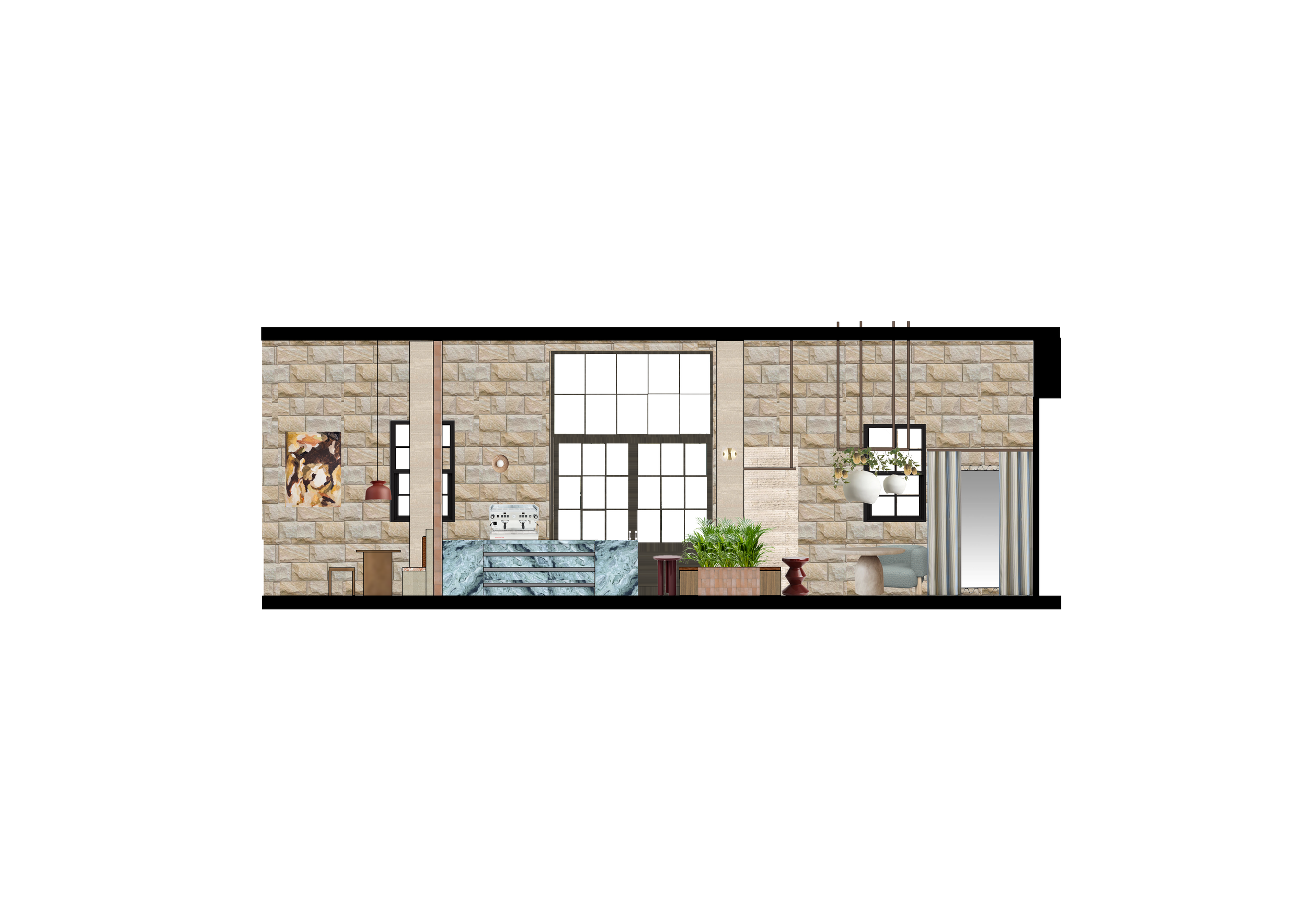 Natural materials such as marble, rope, timber, rock, cork, ceramic, sandstone, and lush greenery are featured throughout. These are complemented by soft, tactile finishes like linen, canvas, and supple leather. Organic, rounded forms are used to enhance the sense of flow and relaxation within the space.