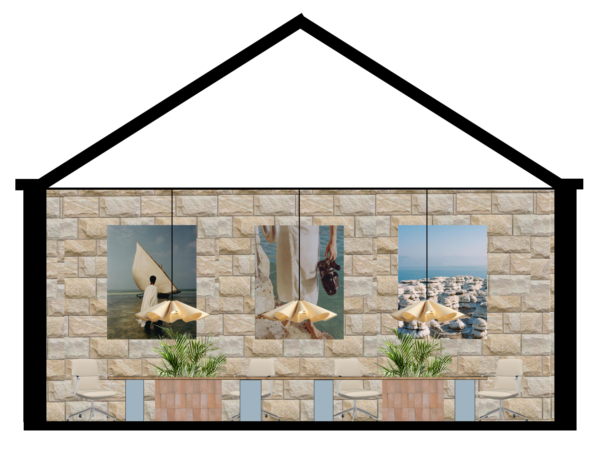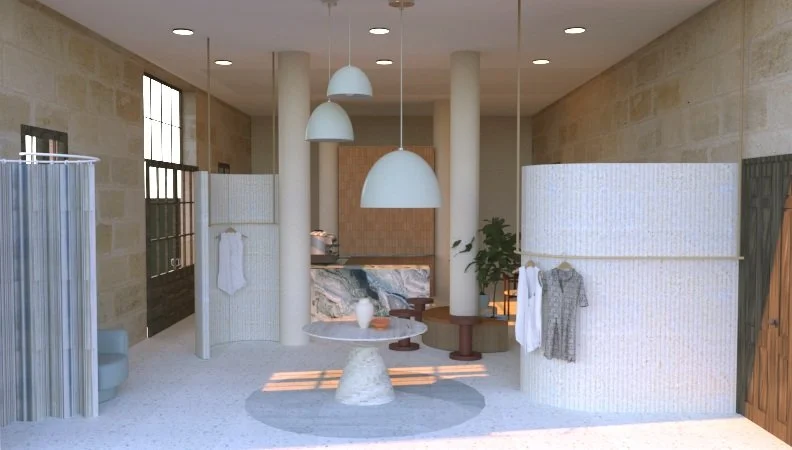 This two-storey commercial fit-out is designed to evoke a sense of calm, comfort, and inspiration—whether visitors are dining, shopping, or working in the office. The space embraces a coastal theme with a warm, golden light concept, creating a serene and grounding atmosphere.